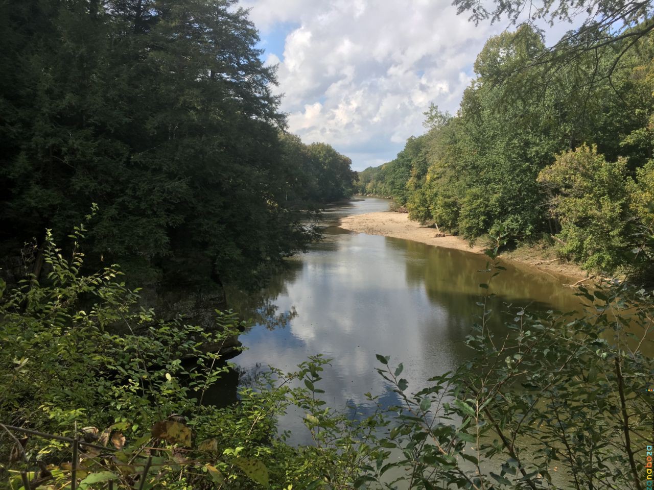 We rijden door naar Turkey Run State Park. Dit is ongeveer anderhalf uur rijden naar het noorden. We betalen de entree en parkeren de auto. We beginnen aan de wandeling. De paden staan niet op de GPSr. Na een tijdje naderen we ons doel tot op 18 meter. Alleen jammer dat het ook nog eens een meter of 50 verder naar beneden ligt. We hebben dus het verkeerde pad gekozen. We wandelen verder en komen bij een Covered Bridge uit. Na deze gefotografeerd te hebben, gaan we verder. Op zoek naar het juiste pad. Gelukkig voor ons hebben we nu wel de juiste keuze gemaakt en ook hier vinden we de cache vlotjes. We volgen het pad verder. Dit wordt even later een stukje uitdagender. We genieten van deze wandeling. Als we terug bij de parkeerplaats zijn, gaan we eerst picknicken. Na de lunch maken we nog enkele korte wandelingen door dit verrassend mooie park. Dan wordt het tijd om door te gaan naar het volgende hotel.