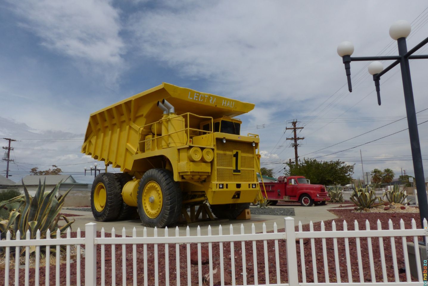 Het wordt langzaamaan tijd om te gaan lunchen. We zoeken een stadje uit met een park zodat we daar kunnen picknicken. Als we de auto parkeren zien we dat het wel een bijzonder park is. In dit park staat namelijk een kiepwagen geparkeerd van een metertje of zeven hoog. Een picknickbankje is er echter niet te bekennen. Omdat we toch wel trek hebben, besluiten we de auto om te toveren tot lunchroom.