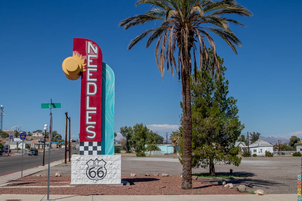 Next stop was het plaatsje Needles. De bedoeling was om hier een rondje van 5 kilometer te wandelen, maar we vonden het beiden niet verstandig om met deze temperaturen in de volle zon een ronde te maken. We hebben er enkele stops met de auto gedaan en een klein stukje gelopen.