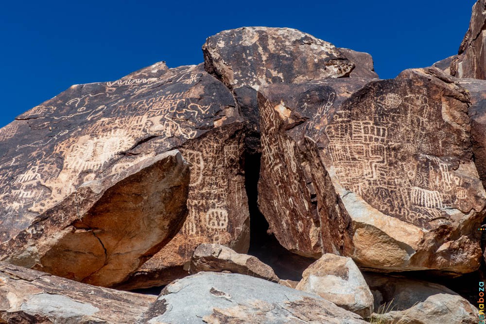 Voor vandaag staat Avi Kwa Ame National Monument op het lijstje. Het zal maar bij weinigen bekend zijn. Dat is ook logisch, want het gebied is pas op 21 maart 2023 uitgeroepen tot National Monument. Vanaf het hotel is het iets meer dan een uur rijden naar de parkeerplaats. En daarna is het ook niet meer heel ver. Dat betekent dus dat we vandaag kunnen uitslapen. Pas om 7 uur gaat de wekker. We ontbijten op het gemak en vertrekken rond de klok van 8 uur. Onderweg bezoeken we eerst nog twee virtuele caches. We rijden verder naar het NM. Als we de auto parkeren, is het al behoorlijk warm. We zijn de enigen, dus het zal heerlijk rustig zijn. Wat we zien kan ons aangenaam bekoren. We pakken de tassen en gaan op pad. Na een klein kwartier lopen, staan we bij de eerste petroglyphen. Deze zijn zeer duidelijk te zien. Hierom staat dit gebied hoofdzakelijk bekend. We wandelen verder door een rivierbedding, en na een tijdje moeten we over de eerste stenen klauteren. Weer een stukje verder, wordt het klauteren toch serieus klimmen. Ik besluit om op verkenning uit te gaan, omdat het toch behoorlijk steil omhoog is, en omdat de stenen toch wel behoorlijk glad zijn. Een uitschuiver is dan zo gemaakt. Ik besluit dat het niet verantwoord is om verder te gaan. Hoe jammer het ook is, want het gebied is simpelweg schitterend.